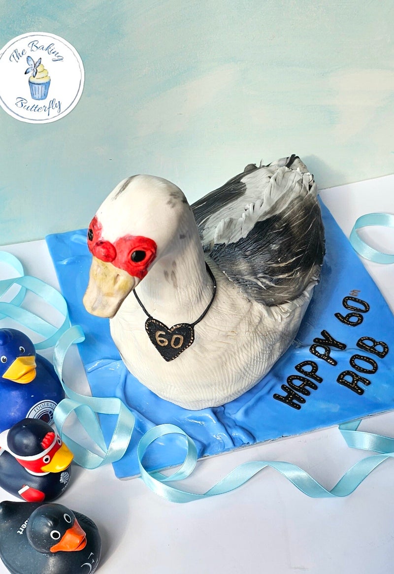 ⭐️⭐️⭐️⭐️⭐️ I requested a special 60th birthday cake for my husband at very short notice on the shape of our adopted duck, Peggy. Vicky was able to accommodate me and produced a masterpiece which bore a pretty close resemblance to the real thing. The cake tasted great. Although the price seemed quite a lot to start with, given I wanted something for just 6 people, it was a lot larger than anticipated and almost a week later we are still able to eat it. Vicky was also able to help in terms of collection which was much appreciated. I would certainly recommend "The Baking" Butterfly Cakes